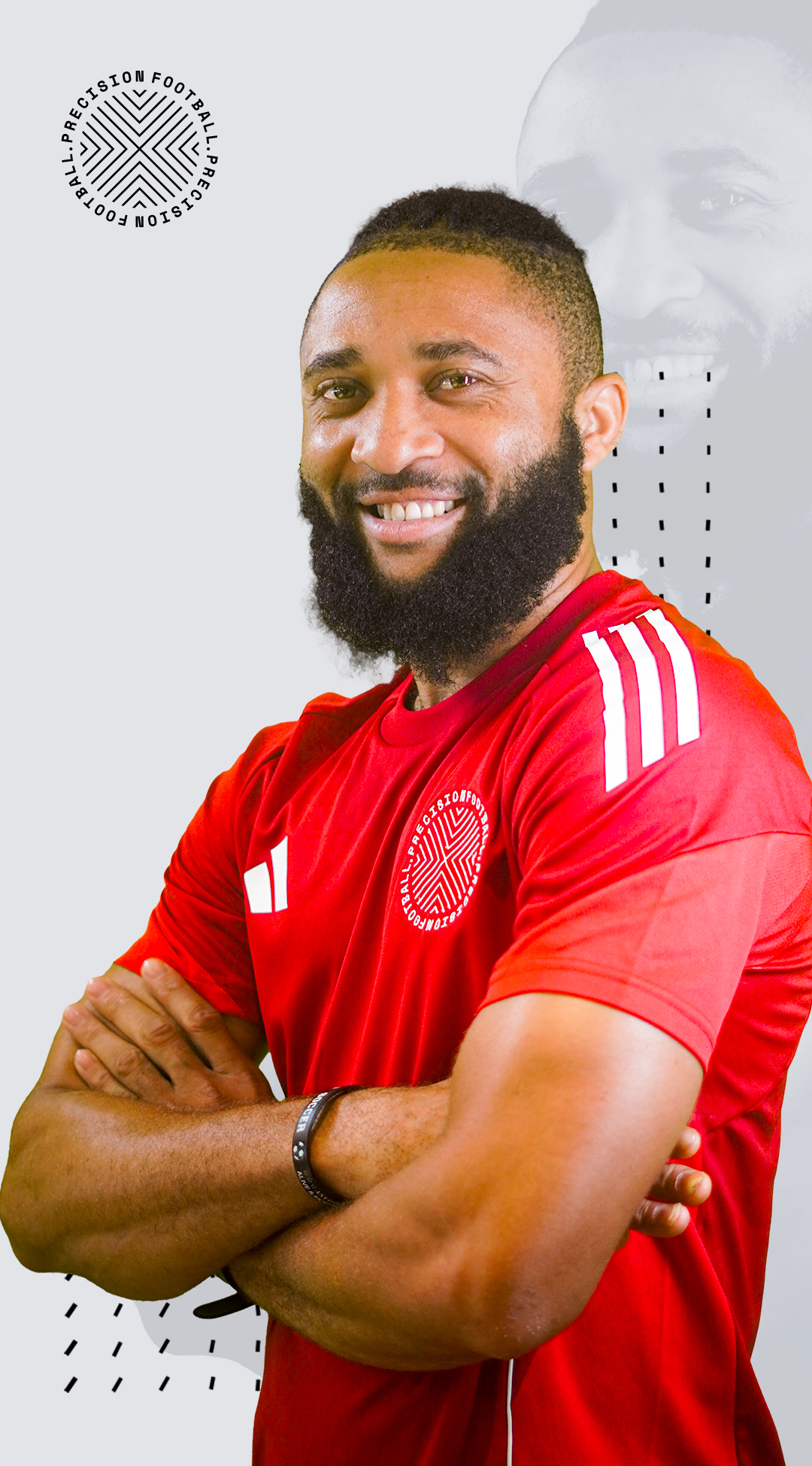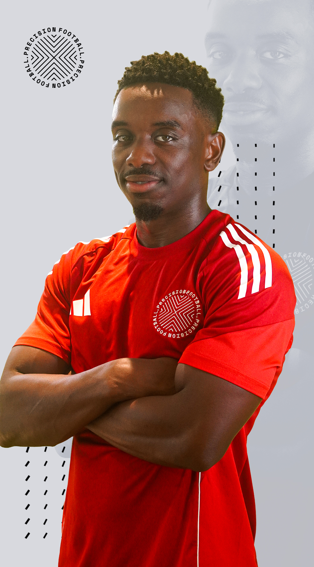 Kofi has been with Precision Football for nearly four years, bringing strong experience from both his coaching education and his playing career. Through England Football Learning, he has completed courses in Coaching Football, Introduction to First Aid in Football, and Talent Identification. His playing background includes Kumba Lakers FC, Treviszo FC, Mbenge United FC, Mount Cameroon FC, Continental FC, National Paints FC, SAFA Amateur and Adrenaline FC.
